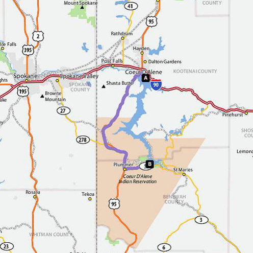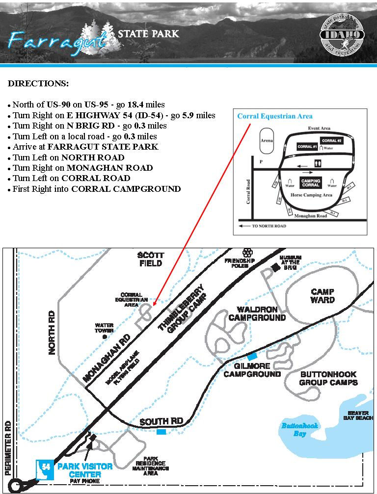 Directions: From Coeur d’Alene travel South on Hwy 95 approximately 34 miles to Plummer. At the flashing light, turn left (East) onto Hwy 5. Travel approximately 4.9 miles. There will be a gated road on the left side of the Hwy with a state sign on the right indicating that the horse trails are to the left.