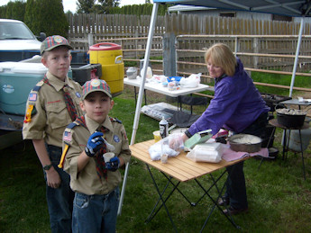 Boy Scouts trying the Dutch oven food