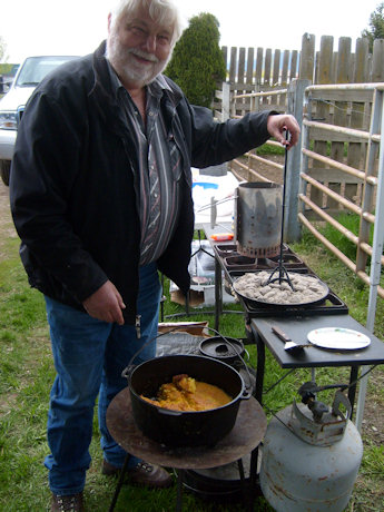 George Miller prepared food with the Dutch oven |