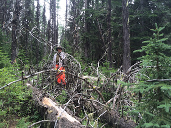 Tracy Gravelle, Avery District's trail manager asked for assistance in packing in supplies to a crew of volunteers that would be rehabilitating Trail 108 from the North Fork of the Clearwater River to Larkins Lake. We knew from first hand experience that the trail was badly in need of work and the project would add greatly to the Mallard-Larkins trail system.