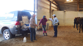 Mary Malloy was very informative with the new brand inspection requirements and hauling regulations. We need to stop at all Port of Entry inspection sites with all documents if you fail to stop the fine is $276.00. A big thanks to Donna and Lou for allowing us to use Red Top Stables and to Kathy, Marcy, Nichole, Jessica and Butch for all the help at the clinic as volunteers. |